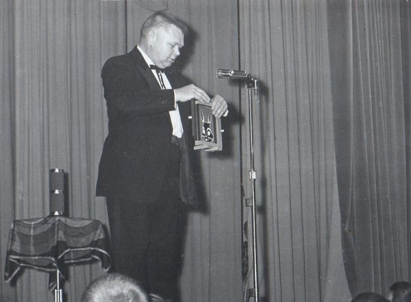 Each year the George Dency Ring 179 awards the Otts Oehm Memorial Trophy for Participation. The award’s namesake was a much admired and very active member of Ring 179 from 1965 through 1987. Arthur Frederick Oehm, better known as “Otts” to his friends, was a charter member of Ring 179. Otts was born in 1927 and served in the U.S. Navy during World War II. Otts worked as a salesman and manager for a hardware and fastener products company but was also extremely active in the Baltimore magic community. Otts performed magic, worked as a magic clown under the name Howdy Dooit and was also affectionately known as Baltimore’s Magic Santa Claus.